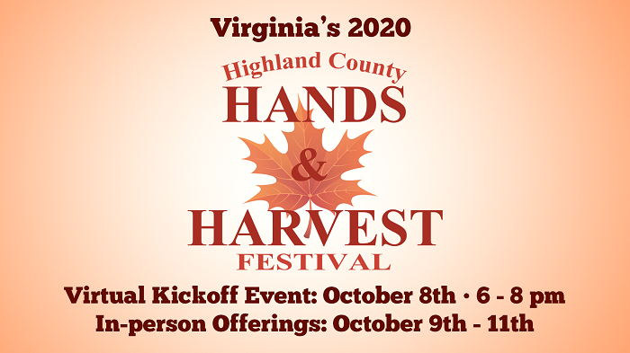 Monterey, VA – Celebrate the beauty and bounty of fall with the annual Hands & Harvest Festival in Highland County, Virginia!  Held from Thursday, October 8, through Sunday, October 11, this year’s festival offers a unique hybrid of both virtual and in-person offerings.