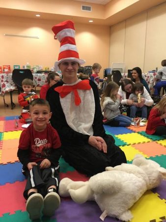 The Kiwanis Club of Front Royal joined in the celebration of Winter Reading Club and Dr. Seuss’s birthday with breakfast for all during a special family story time. Kiwanis members were readers during the story time and Samuels Library volunteer Nathanael Jacob portrayed the Cat in the Hat.