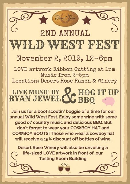 Desert Rose Ranch and Winery in Hume, Virginia, will be unveiling our life-sized LOVE artwork, on November 2nd at 1 p.m. during our annual Wild West Fest!