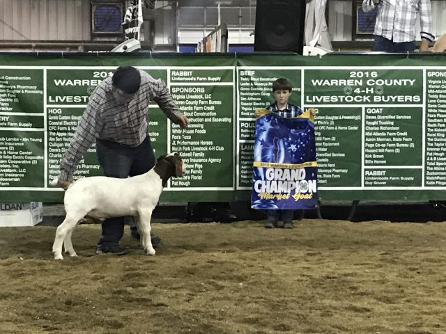 The next animal to be auctioned off was the Grand Champion Goat, auctioned off for $700 to Rockingham Co-op. With the auction almost over, there were just three animals left. The Grand Champion Chicken was next, a rare lavender breed of chicken, which was sold for $325 to the Strasburg Co-op. That’s a pretty penny for a very pretty bird.