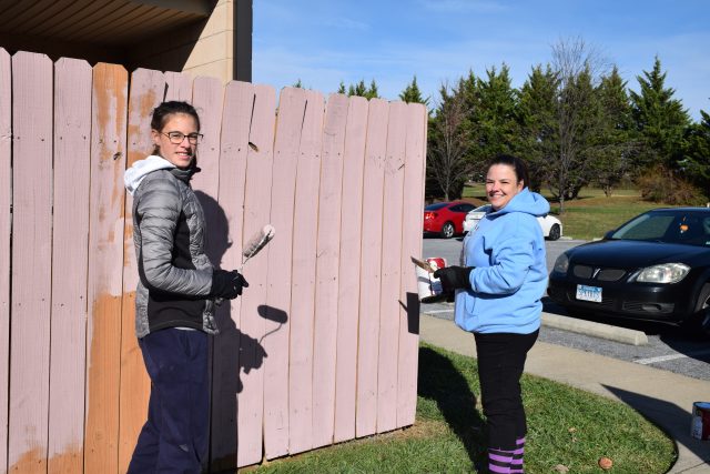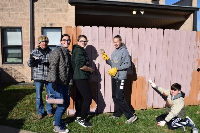 Skyline Middle School Interact Club students painted the fencing around the Humane Society of Warren County as a community service project. Photos by Jennifer Avery.