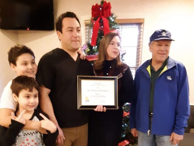 On December 18, 2019, the Colonel James Wood II Chapter of the Sons of the American Revolution presented a Bronze Good Citizenship Medal to Dr. Fred Broadhead, Front Royal Dentist. Dr. Broadhead was honored for his outstanding support of the community.