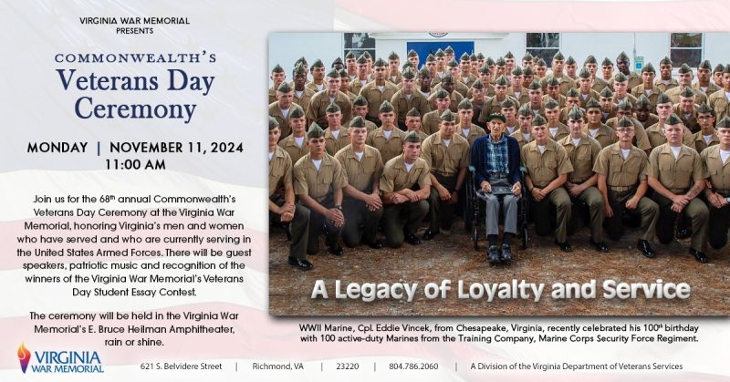 This annual Veterans Day ceremony continues Virginia’s legacy of honoring its veterans, both living and fallen. It reminds the Commonwealth of its dedication to those who have dedicated their lives to service to the nation.