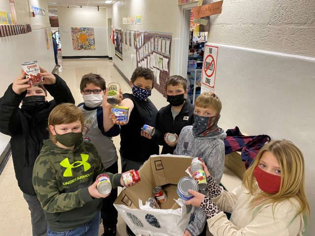 Student at E. Wilson Morrison Elementary School EarlyAct Club collecting canned goods for Salvation Army