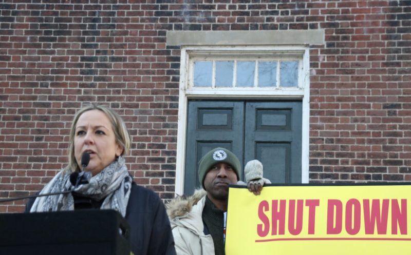 Del. Holly Seiblold, D-Fairfax, speaks at a rally outside Virginia’s Capitol on Jan. 8, 2025 in protest of allegations of mistreatment of inmates and prolonged use of solitary confinement at Red Onion and Wallens Ridge state prisons. (Photo by Charlotte Rene Woods/Virginia Mercury)