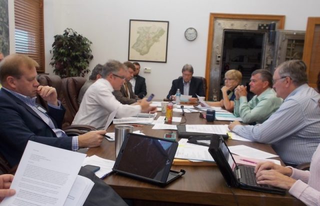 The recently re-tooled EDA Board of Directors and staff at work Friday morning, July 26