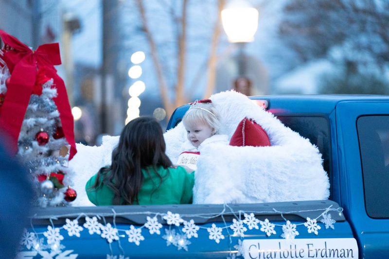 The highlight of the evening, as always, was the arrival of Santa Claus. Breaking tradition, Santa opted out of his usual spot atop a fire truck, choosing instead to ride in his signature red sleigh. His appearance was met with waves and cheers, especially from the children bundled up along the sidewalks, their faces lit with excitement.