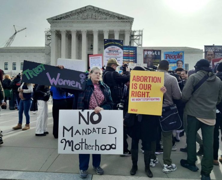 Supporters of reproductive rights protested outside the U.S. Supreme Court on Tuesday, March 26, 2024, as justices heard oral arguments over access to mifepristone, one of two pharmaceuticals used in medication abortion. (Photo by Ashley Murray/States Newsroom)