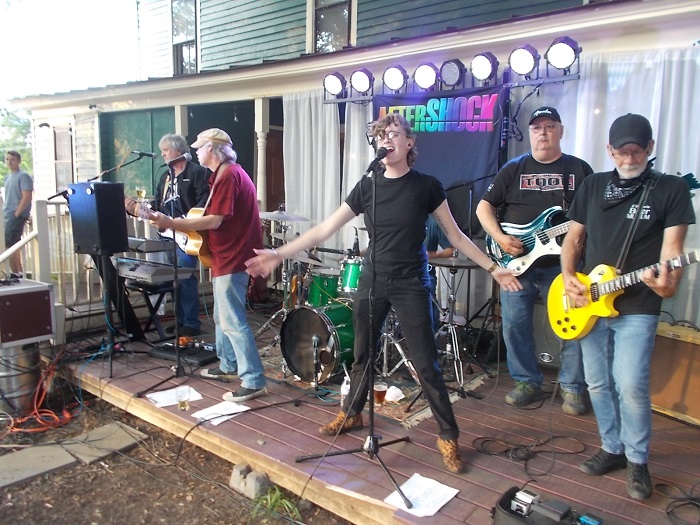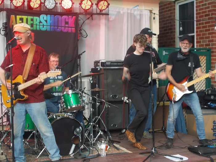 From left, Aftershock’s Dewey, James and Reno Vaughan, Dean Smith and Doug Hess rock on