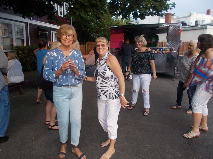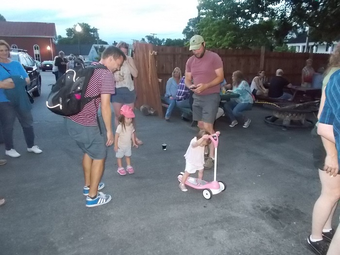 LET’S DANCE – all ages were getting on the good foot; Dad, let me down so I can start dancing too! – OK, a scooter works…