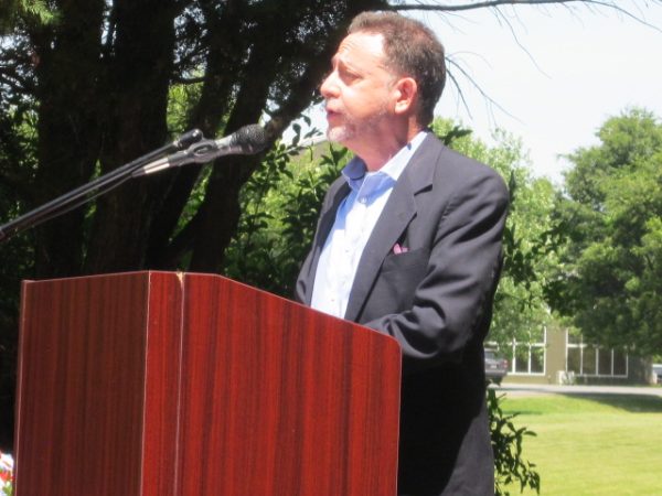 Able Forces veterans assistance group principal and Front Royal Town Councilman ‘Skip’ Rogers, once himself a military dog handler, leads the memorial wreath-laying ceremony.