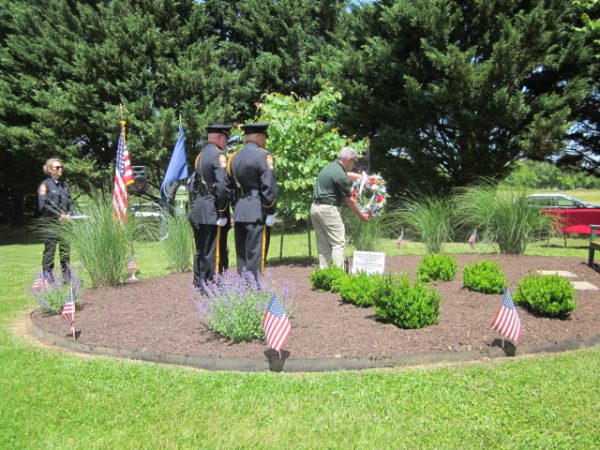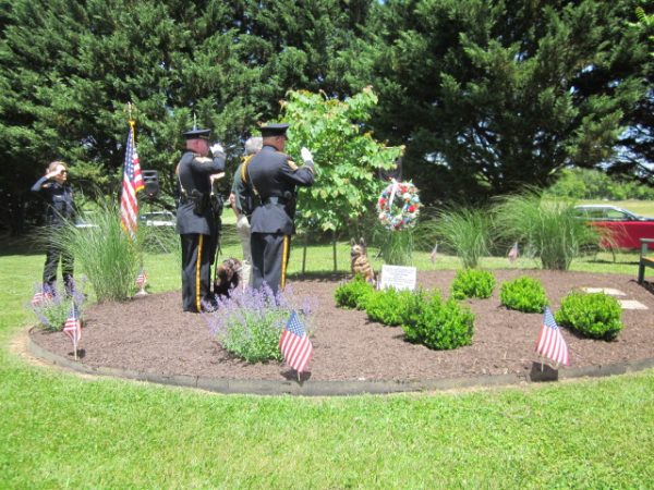 Following Herman’s keynote address, Barr introduced Front Royal Councilman Skip Rogers, himself a former military dog handler, to lead the local law enforcement and K-9 contingent in the solemn act of laying a wreath at the Wagner Shelter Memorial Garden site.