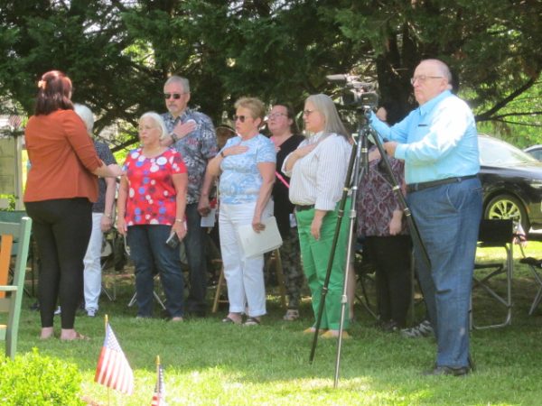 Members of the Valley Chorale opened and closed the Dogs of War Memorial Day weekend event with stirring renditions of ‘The National Anthem’ and ‘America the Beautiful’. Below, post-closing rendition of ‘America the Beautiful’ event organizer Malcolm Barr Sr. wraps up the event with a heartfelt ‘thank you’ to all participants and attendees, as ‘Ben’ gets back in the ‘front row’.
