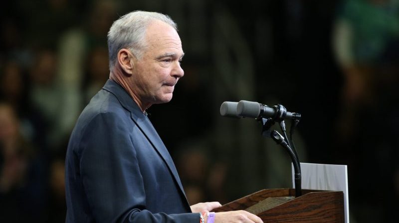 U.S. Sen. Tim Kaine, D-Virginia, speaks at a rally in Norfolk for Democratic gubernatorial nominee Abigail Spanberger on Nov. 1, 2025. (Photo by Charlotte Rene Woods/Virginia Mercury)