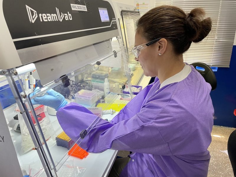 Nicolle Baird, a federal Centers for Disease Control and Prevention fellow, works on a real-time polymerase chain reaction analysis to better understand mpox at a laboratory in Ghana in 2022. U.S. public health officials are encouraging those at risk of mpox infection to get vaccinated as cases rise in several states compared with last year. (Centers for Disease Control and Prevention)