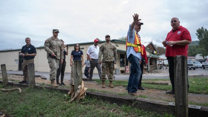 From FEMA: “An official points to damage from Hurricane Helene (in Washington County, Va.,, speaking with FEMA Federal Coordinating Officer Timothy Pheil. Officials surveyed damage with staff from the Virginia Department of Emergency Management, Virginia National Guard, U.S. Army Corps of Engineers and FEMA.” (Nicholas Monteleone/ FEMA)