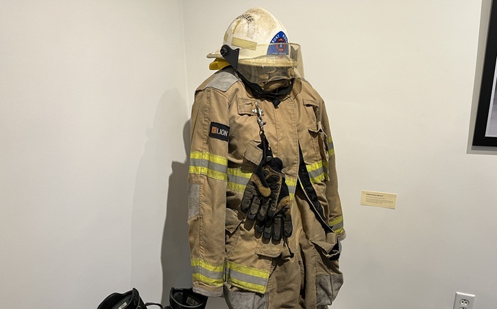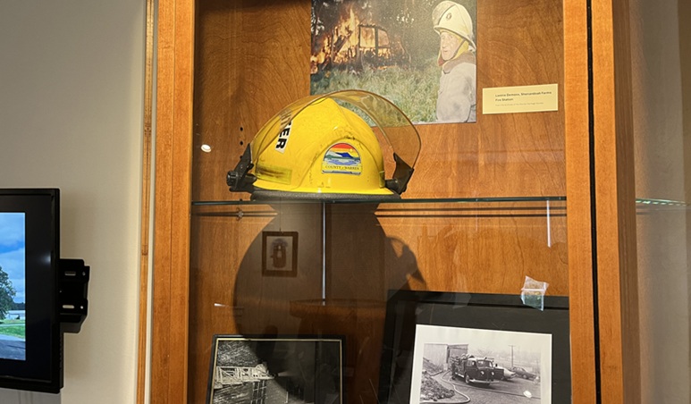 (Above) and (below): Maiatico’s presentation takes place in a room furnished with exhibits to Warren County’s fire service legacy.