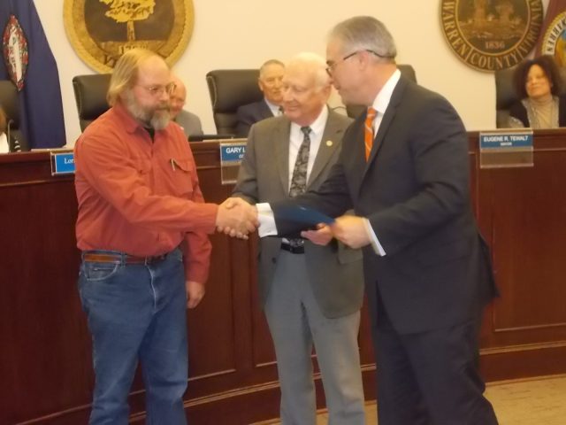 Congratulations, Interim Town Manager Tederick may be thinking as he recognizes WWTP veteran Timmy Fristoe as December Employee of Month on Monday – you’re not on the list. Royal Examiner File Photos/Roger Bianchini
