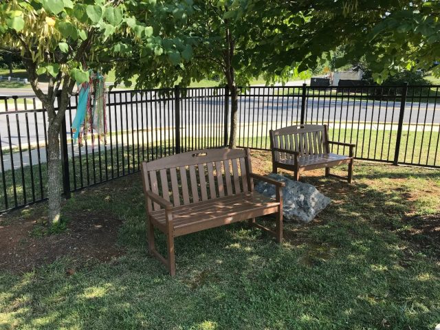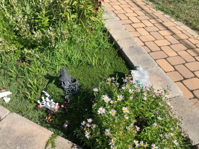Right beyond the fence, Samuels Public Library has its own fairy garden in the raised brick plant bed. All photos by Kim Riley