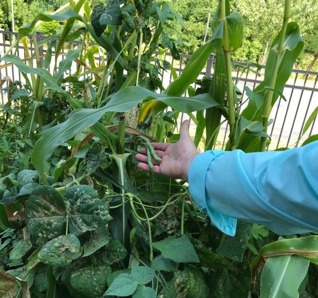 Michal Ashby, youth reference supervisor at Samuels Public Library, tours Children’s Garden, where visitors may play chess (above); sit and read (below); or view beans, butterflies, botanicals & berries.