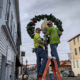 Town of Front Royal Electric Department employees Preston Toms and Hunter Partlow were busy Monday, hanging holiday wreaths up and down historic Main Street. Mr. Toms,...