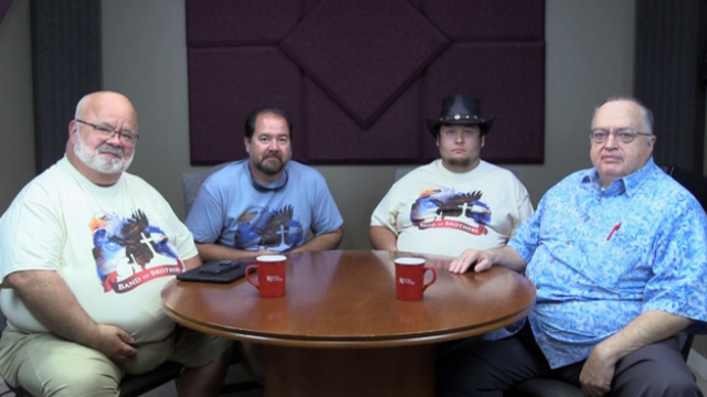 Band of Brothers in the studio with Royal Examiner publisher Mike McCool. Photo and video by Mark Williams.