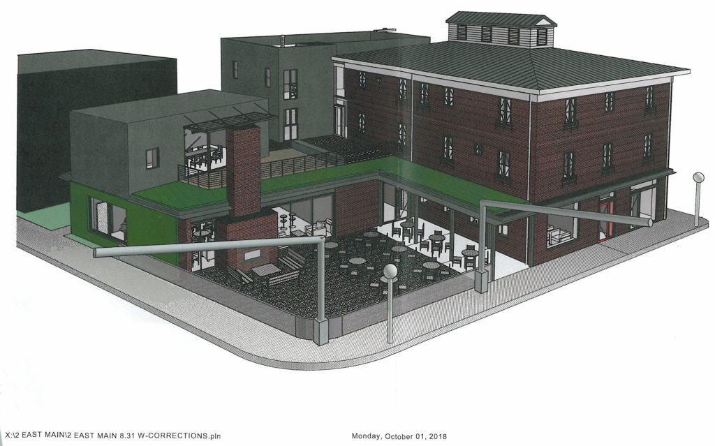 In the wake of the BAR’s July approval of a Certificate of Appropriateness for general aspects of the project, the purpose of the October meeting was to provide requested additional detail on planned renovation work. 2 East Main Street LLC project architect Jim Burton, who is the common denominator between the past and current development groups, presented drawings illustrating planned work and options on a variety of aspects of the project.