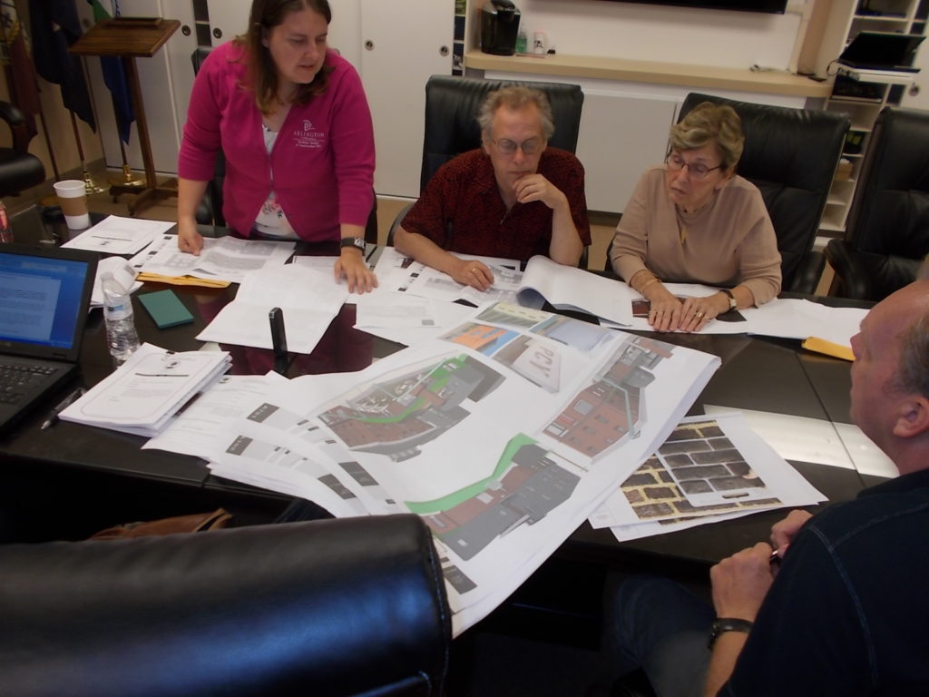 Those included types of replacement brick to be used surrounding window repairs; siding color for the addition that will replace the recently demolished 1950’s annex section; details of the “living roof” of that addition structure; design aspects of a new roof on the old building to match the existing design and color; and flower box railings tied to most of the old building windows.