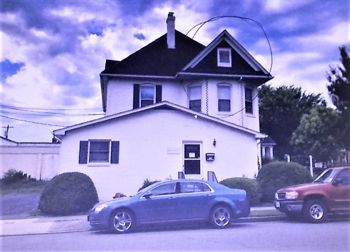 Above, a 2019 photo of the building housing Bill Powers State Farm Insurance Agency in the main structure; below a ‘Historic Image’ included in the agenda materials dating to a previous tenant and/or owner.