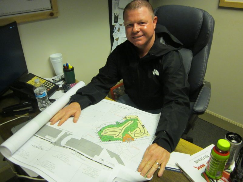Runyon discussing the status of his plans on Aug. 18 in his office in the SVGC clubhouse. The below graphic shows the 12 existing residential properties, all to the left, above off Rockland Rd., below off Bowling Green Rd., that would have directly abutted new residential construction. As noted in the previous caption, Runyon was planning to offer those homeowners 75 feet of corresponding property of his to buffer with. The long straight section of proposed homes on the left abuts active farmland with no public roads or nearby residences.