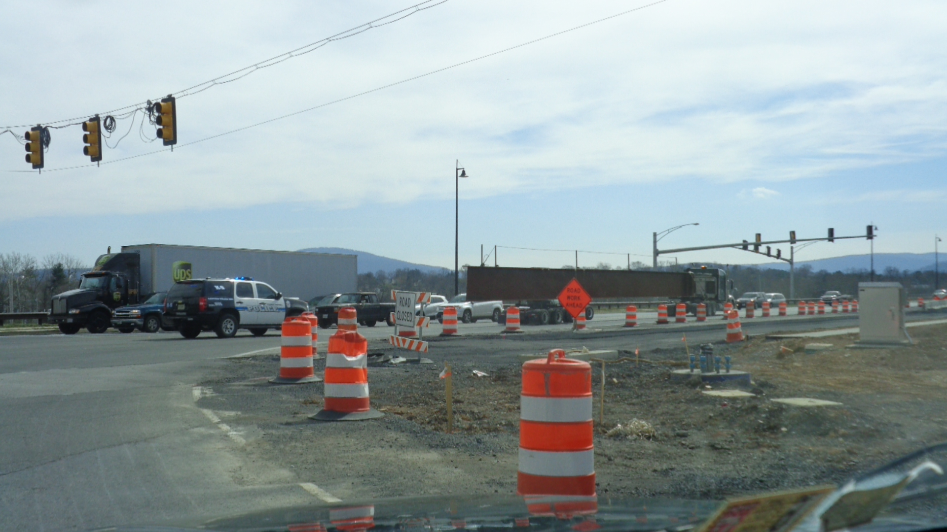 The really astonishing thing was that as I made my right off Strasburg Road, south onto the bridge directly behind the Town police car escorting the beam across the bridge, other than making the transit at about 10 to 15 mph, it was an incredibly smooth and un-delayed crossing, with the truck pulling into the closed right lane without issue or additional stoppage of traffic.