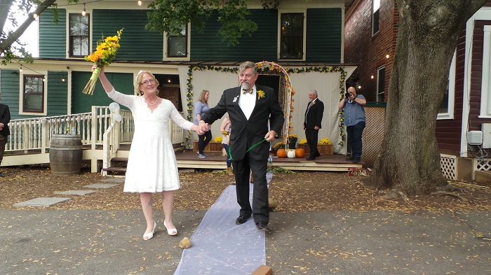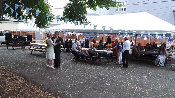 But with that overly temperate chapter of our history behind us, it was a bright and celebratory Saturday afternoon as Bruce awaited Robin’s procession down the impromptu bridal path to the Museum Biergarten stage area to a somewhat non-traditional musical accompaniment of AC/DC’s “Hell’s Bells”.
