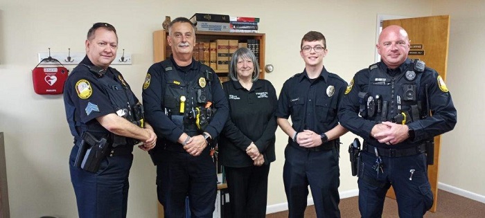 2023 Stephens City Police Department: L to R, Sgt. Chris James, Chief Bill Copp, Administrative Assistant Evelyn Partlow, Officer Cody Jacob Arbogast and Officer Jason Nauman. Photo courtesy Mayor Mike Diaz.