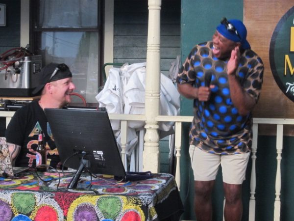 Busy as he was hosting his party, not to mention providing much of the entertainment with DJ Yani’s assistance and keeping an eye on the final prep and distribution of food for the party — some of that pork round (back) “Chef” Bev prepared as B-day approached — we waited to bother him for a perspective on his birthday milestone and a look at his “back pages”, including the musical ones, until the following day.