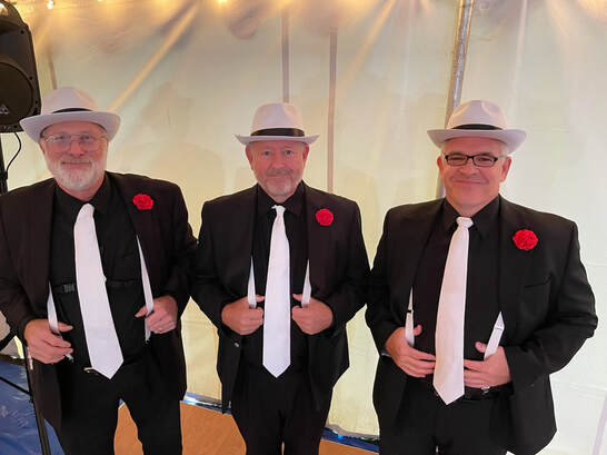 Silver Tones styling sax section, Dan Hurlow (left), Joe MacFarland (center), and Jeff Edmonds (right).