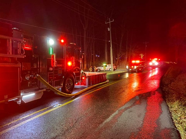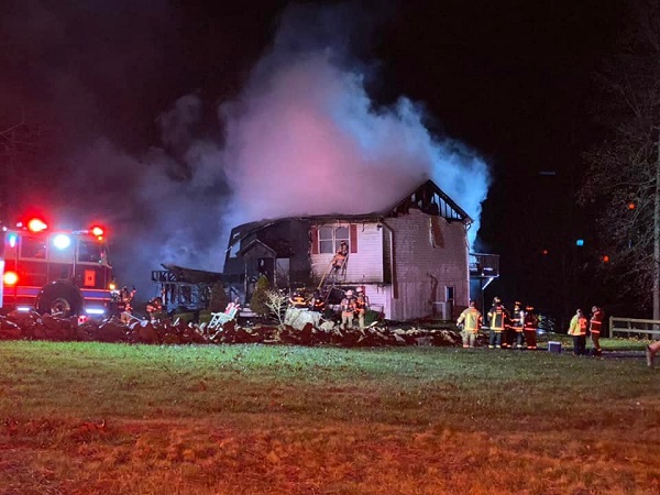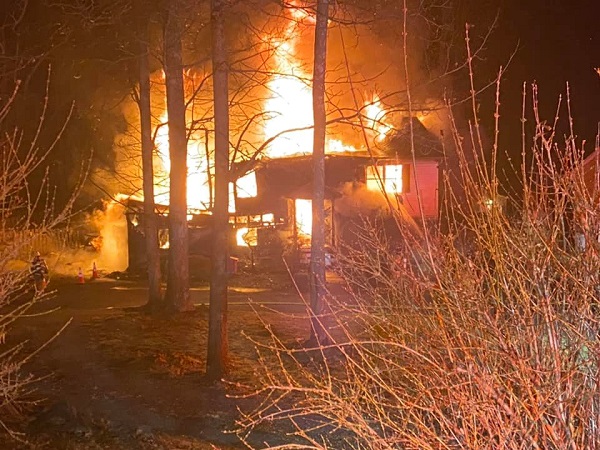 Medic 4 arrived on scene and reported fire throughout the home. Engine 1105 and EMS 1101 followed shortly after, confirming the dwelling was “fully involved”. Firefighters were unable to enter the residence due to structural collapse and instability. Live electrical lines also complicated fire suppression efforts. Firefighters prevented the fire from spreading into the nearby woods and outbuilding.