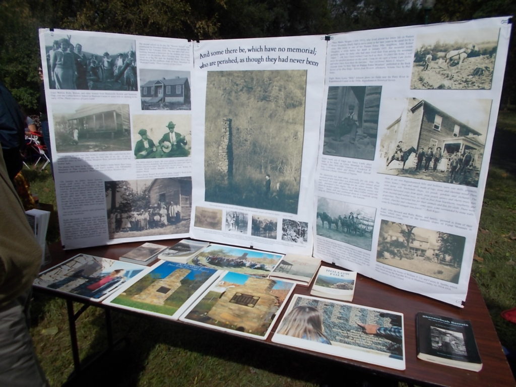 A Blue Ridge Heritage Project display table featuring the words “And some there be, which have no memorial; who are perished as though they had never been” – words no longer true for those displaced by the creation of an eastern national park.