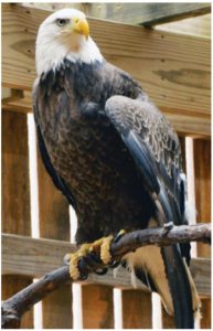 Raptor Hill, home to Jefferson the American Bald Eagle, Briar Rose, the Red Tailed Hawk, and Lucy the Red Shouldered Hawk; Jefferson and Lucy are pictured below.