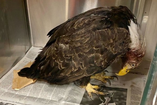 This adult Bald Eagle from Stafford County was found grounded and unable to fly. The finder observed the eagle feeding on a deer carcass before its rescue.