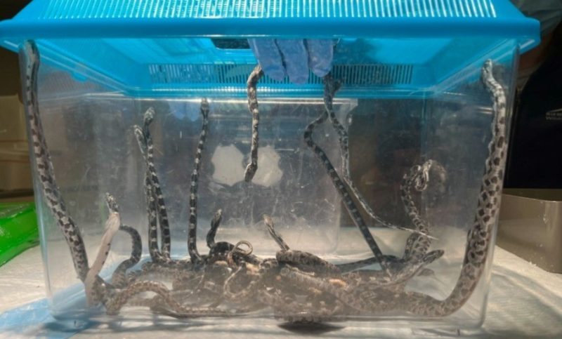 Unfortunately, the single milksnake was found deceased the next day, but the remaining 18 ratsnakes were alert, healthy, and hydrated after a soak and time to decompress.