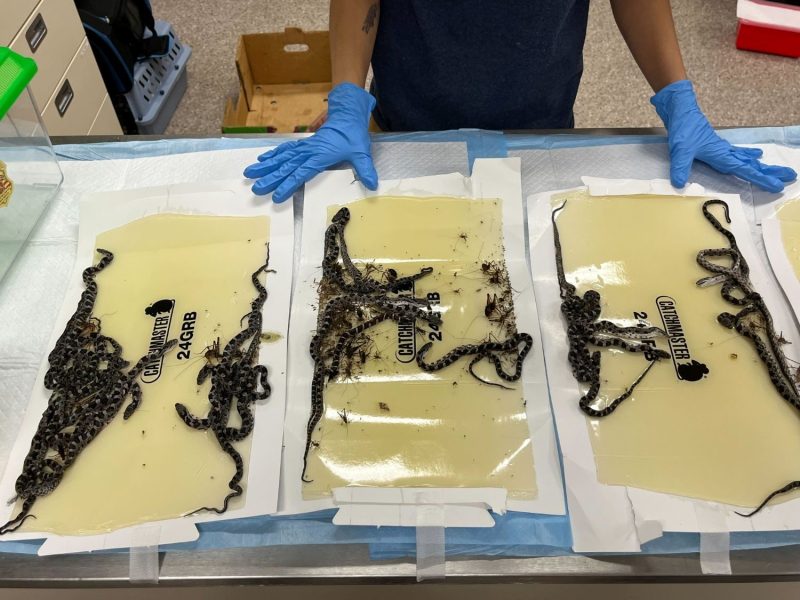 Nineteen juvenile central ratsnakes and an eastern milksnake walk into a wildlife center on multiple glue traps…