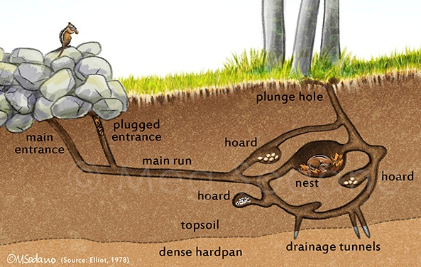The Eastern Chipmunk is the only chipmunk species found in our area and they are an important part of our ecosystem. They disperse seeds from the plants and fungi they feed on and are an important food source for hawks, foxes, bobcats, owls, and more. Their impressive burrows, that they often live in for their entire life, also help to aerate and recycle soil!