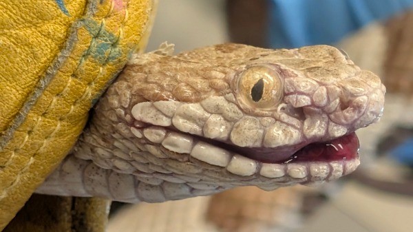 This stunning Eastern copperhead came to us in poor condition—emaciated, dehydrated, and with severe inflammation in their gums that prevented their mouth from fully closing.
