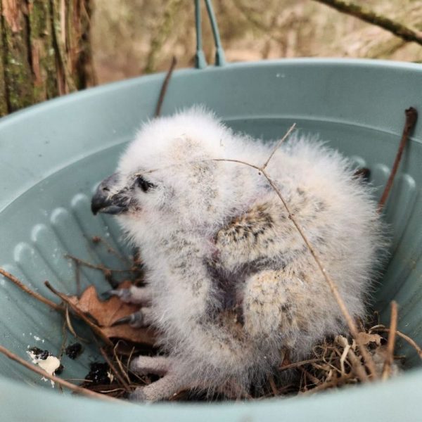 In most cases a deceased sibling would warrant this bird coming to us for evaluation. In this case, our Senior Wildlife Education Specialist, Alysa, who is also a permitted rehabilitator, went out to evaluate the baby on site to determine if renesting was possible.