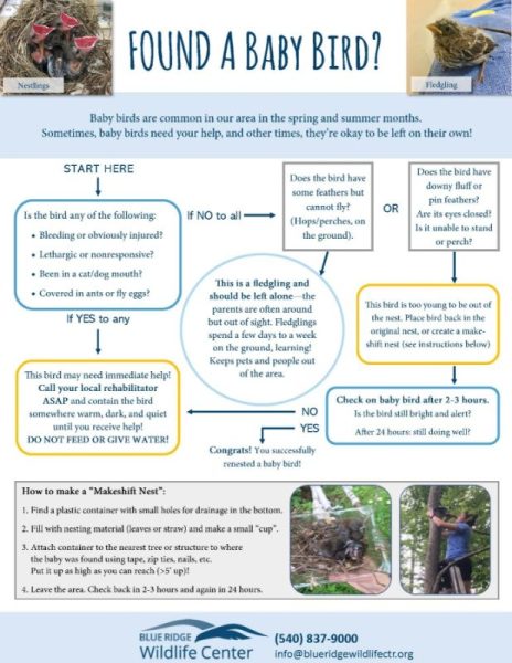 Keep this flow chart handy. This time of year many birds are in the nest or fledging. By following this step-by-step guide you will know what to do if you find a baby bird.