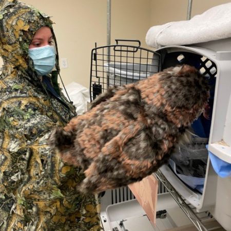 By using puppets and camouflage to feed babies, we help to prevent imprinting. Since humans are the biggest threat to wildlife, we never want these animals to feel safe around people. This kind of treatment will help increase their ability to survive on their own in the wild.