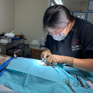 Our veterinary student extern performed a meticulous surgical repair to close the extensive wound.