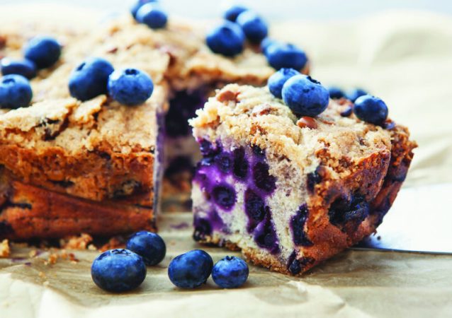 With its juicy blueberries and crunchy topping, this cake is perfect for serving to company — or eating for breakfast!