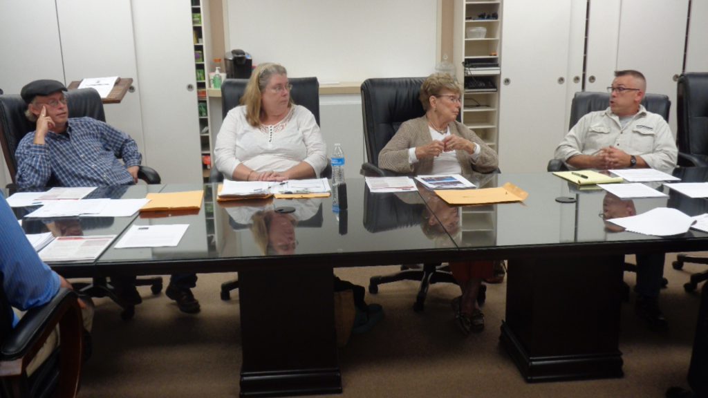 From left, Duane Vaughan, Joan Harding, Nancy LeHew and Michael Whitlow ponder a tough call on the future of Front Royal’s Historic Downtown Business District.