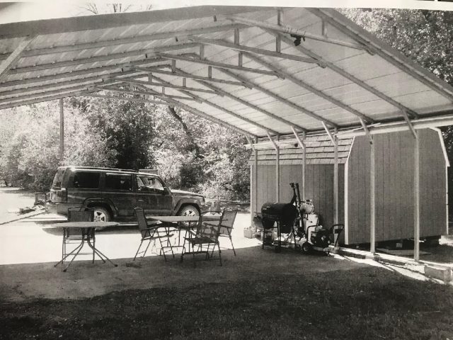 Pricillia Perko, a lung cancer and heart attack survivor, currently suffers resulting health conditions that have severely impacted her breathing. One of the ways that Mark Perko tried to help improve her quality of life and to proactively prepare for emergencies occurred in 2015 when he erected the pavilion, which serves two purposes: as a canopy that allows Pricillia to enjoy the outdoors without being baked by the sun, and for car shelter during inclement winter weather when she may need emergency transport to the local hospital.
